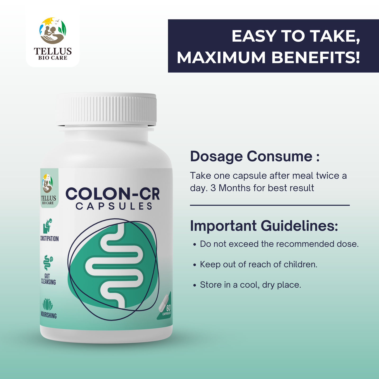 Colon-CR Capsule is a powerful pack that addresses many health issues, including relieving constipation, removing toxins from the gut, and reducing bloating and gas. Moreover, it helps to remove undesirable substances in the bloodstream and supports the eradication process through the bowel walls.