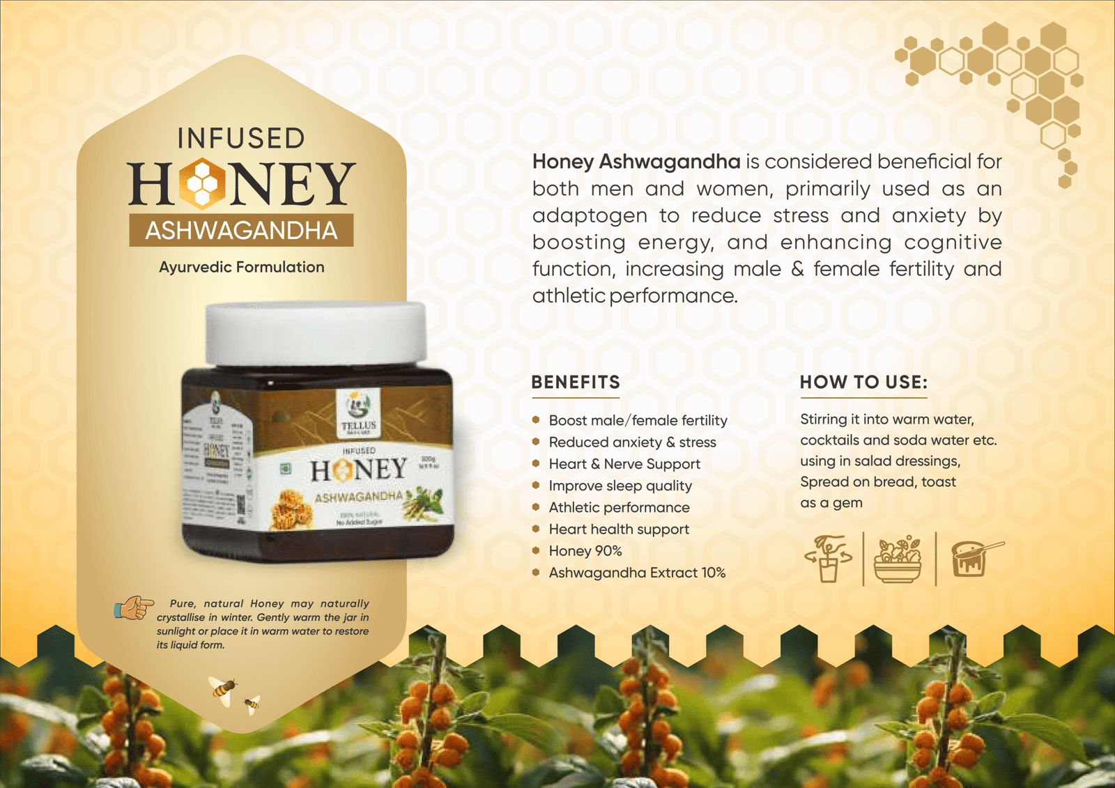 *Price Inclusive of All TaxesHoney Ashwagandha is considered beneficial for both men and women, primarily used as an adaptogen to reduce stress and anxiety by boosting energy, and enhancing cognitive function, increasing male & female fertility and athletic performance.