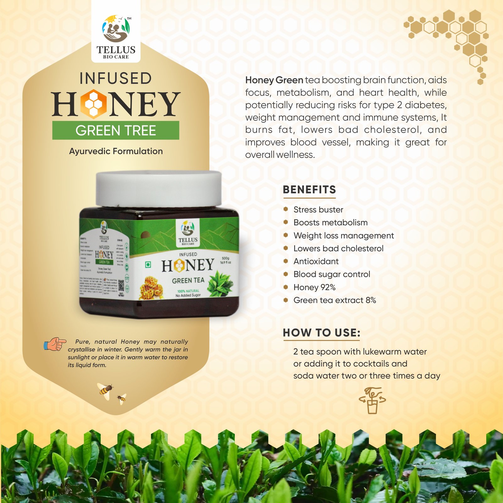 Honey Green tea boosting brain function, aids focus, metabolism, and heart health, while potentially reducing risks for type 2 diabetes, weight management and immune systems, It burns fat, lowers bad cholesterol, and improves blood vessel, making it great for overall wellness.